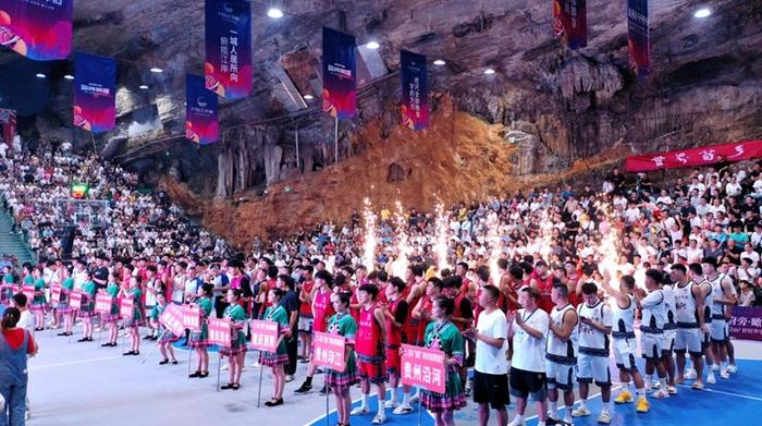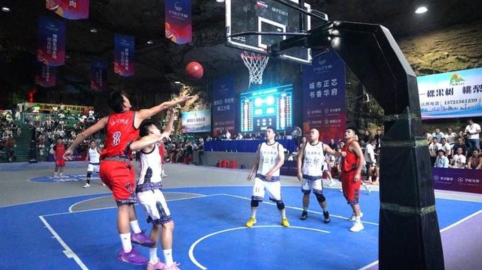 随着比赛的推进,场上球员每一个精彩动作都引发了雷鸣般的掌声。篮球击地的声音、球鞋摩擦地面的声音及观众的欢呼声在洞壁间来回反射,形成天然立体环绕声,交织成独特的交响乐。